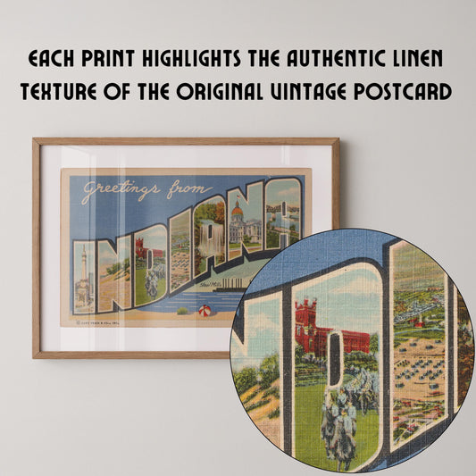 • Greetings from Indiana Large Letter Vintage Postcard : Fine Art Paper Print