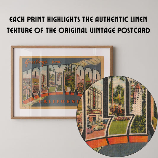 Greetings from Hollywood Vintage Large Letter Postcard : Fine Art Paper Print
