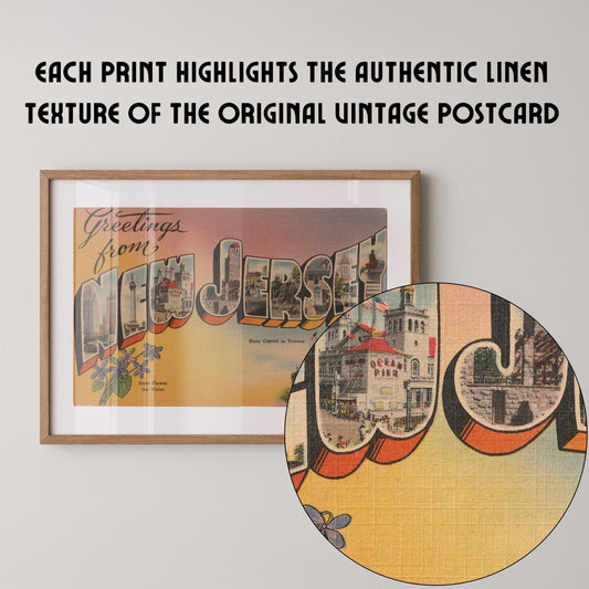 Greetings from New Jersey Vintage Large Letter Postcard: Fine Art Paper Print