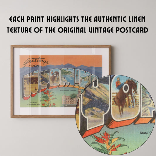 • Greetings from Wyoming Vintage Large Letter Postcard: Fine Art Paper Print