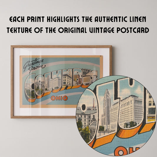 Greetings from Columbus Vintage Large Letter Postcard : Fine Art Paper Print