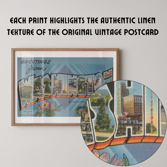 • Greetings from Washington Vintage Large Letter Postcard: Fine Art Paper Print