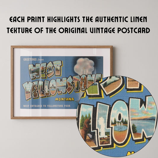 Greetings from West Yellowstone Vintage Large Letter Postcard : Fine Art Paper Print
