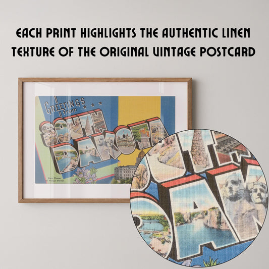 Greetings from South Dakota Vintage Large Letter Postcard: Fine Art Paper Print