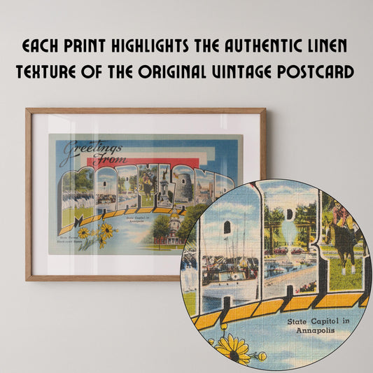 • Maryland Art Print, Greetings from Maryland, Retro Maryland Decor, Retro Wall Art, Vintage Decor, Maryland Poster