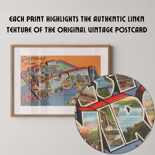 Greetings from West Virginia Vintage Large Letter Postcard: Fine Art Paper Print