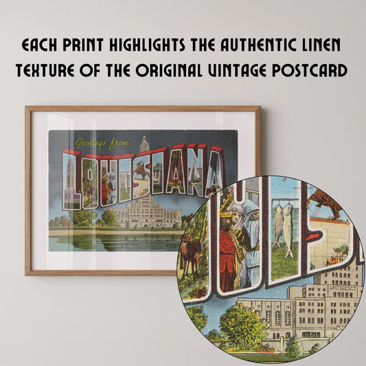 Greetings from Louisiana Vintage Large Letter Postcard : Fine Art Paper Print