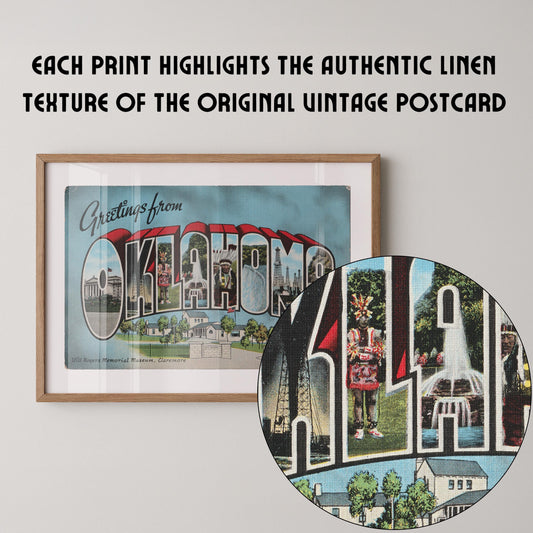 Greetings from Oklahoma Vintage Large Letter Postcard: Fine Art Print