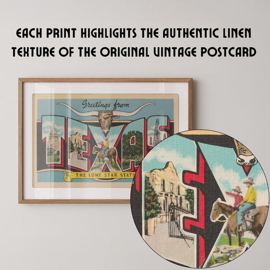 Greetings from Texas Vintage Large Letter Postcard: Fine Art Paper Print