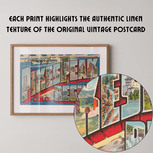 Greetings from Pikes Peak Vintage Large Letter Postcard: Fine Art Paper Print
