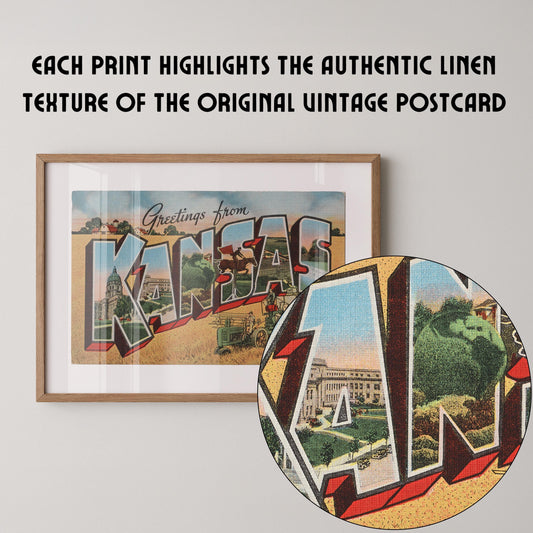 Greetings from Kansas Vintage Large Letter Postcard : Fine Art Paper Print
