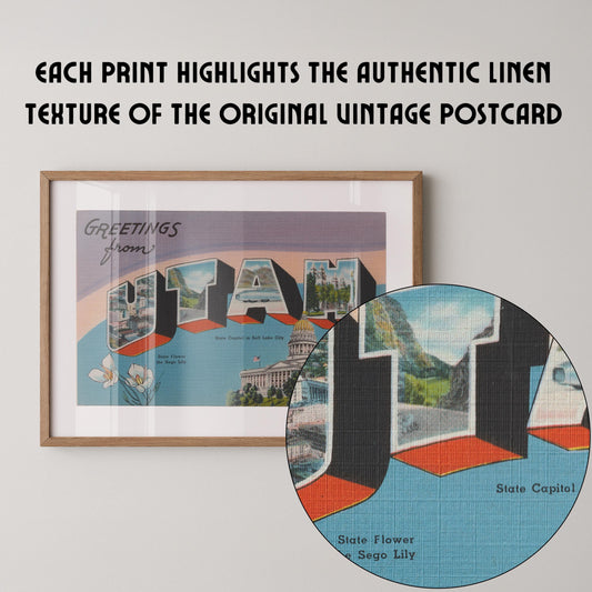 Greetings from Utah Vintage Large Letter Postcard: Fine Art Paper Print