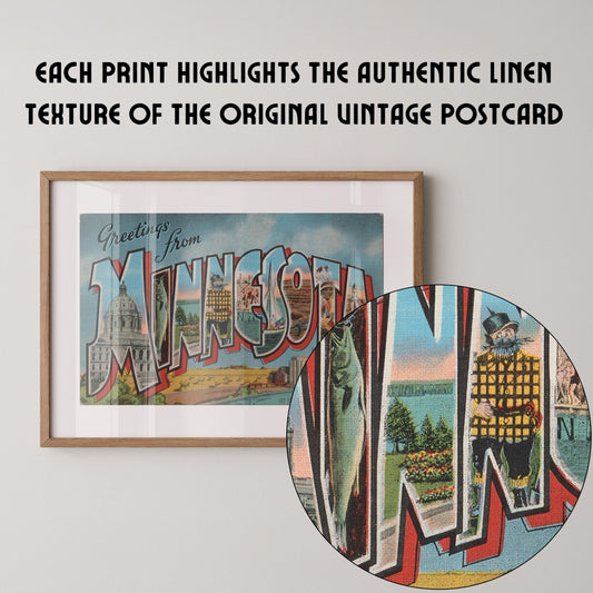 Greetings from Minnesota Vintage Large Letter Postcard: Fine Art Paper Print