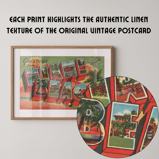 Greetings from Miami Beach Vintage Large Letter Postcard: Fine Art Paper Print