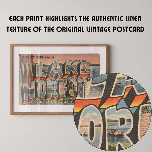 Greetings from Lake Norfork Ozarks Vintage Large Letter Postcard: Fine Art Paper Print