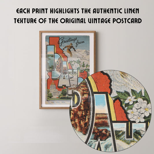 Greetings from Idaho Vintage Large Letter Postcard : Fine Art Paper Print