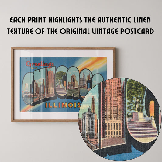 Greetings from Chicago Vintage Large Letter Postcard : Fine Art Paper Print