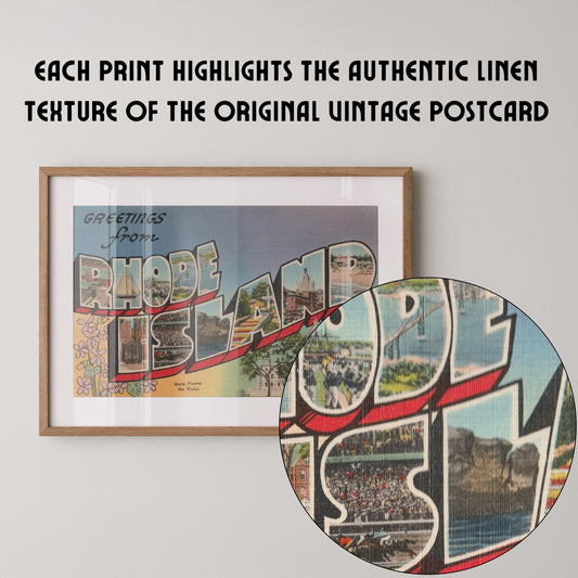 Greetings from Rhode Island Vintage Large Letter Postcard: Fine Art Paper Print