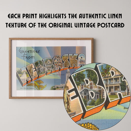 Greetings from Nebraska Vintage Large Letter Postcard: Fine Art Paper Print