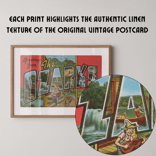 Greetings from Ozarks Vintage Large Letter Postcard: Fine Art Paper Print
