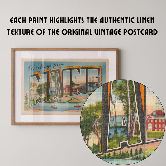 Greetings from Maine Vintage Large Letter Postcard: Fine Art Paper Print