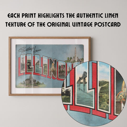 Greetings from Illinois Large Letter Vintage Postcard : Fine Art Paper Print