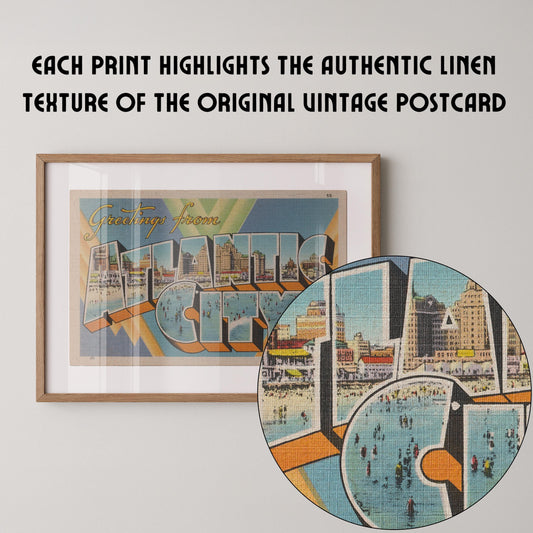 Greetings from Atlantic City Large Letter Vintage Postcard : Fine Art Paper Print