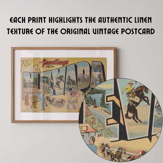 Greetings from Nevada Vintage Large Letter Postcard: Fine Art Paper Print