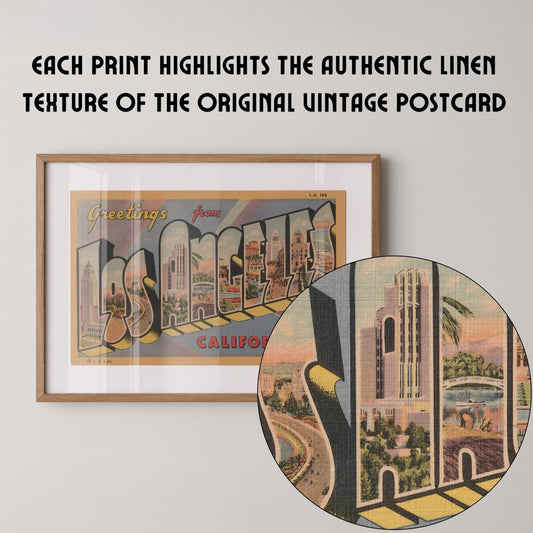 Greetings from Los Angeles Vintage Large Letter Postcard : Fine Art Paper Print