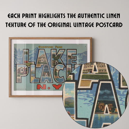 Greetings from Lake Placid Vintage Large Letter Postcard: Fine Art Paper Print