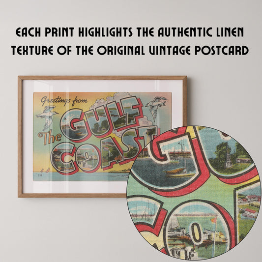 Greetings from Gulf Coast Vintage Large Postcard : Fine Art Paper Print