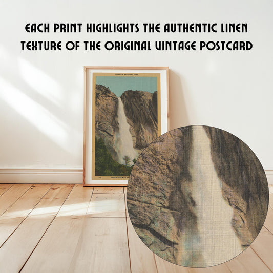 Yosemite National Park Upper Falls Vintage Landscape Postcard: Canvas Print Framed or Unframed
