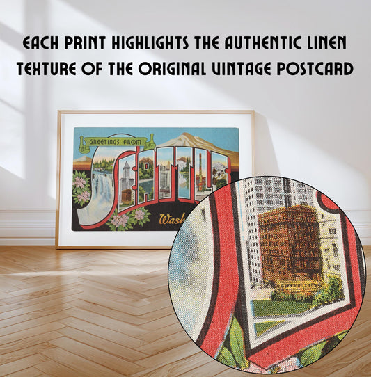 Seattle Canvas Print, Greetings from Seattle, Retro Seattle Decor, Vintage Seattle, Retro Wall Art, Vintage Decor, Seattle Poster