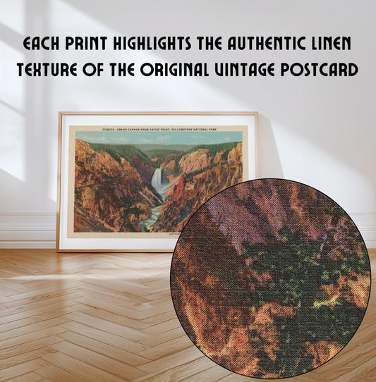 Yellowstone National Park Grand Canyon Vintage Postcard : Canvas Print