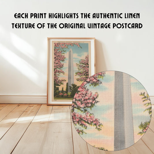 Washington Monument in Cherry Blossoms Vintage Landscape Postcard: Canvas Print