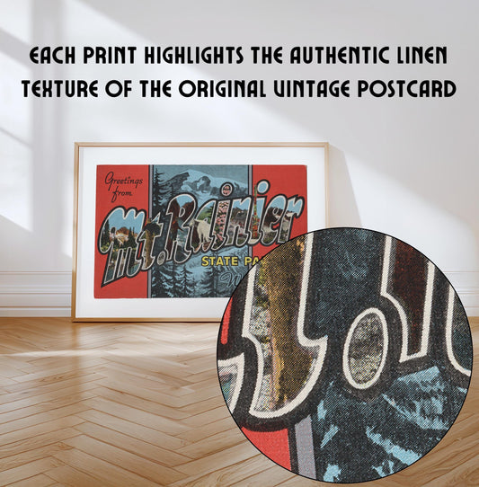 Greetings from Mt. Rainier Vintage Large Letter Postcard: Canvas Print