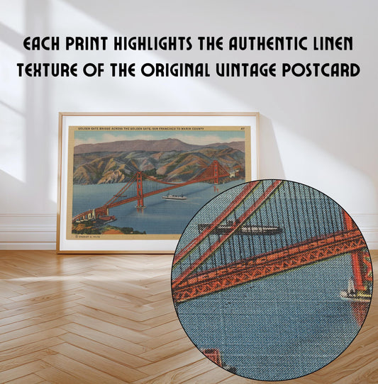 Golden Gate Bridge San Francisco Landscape Vintage Postcard : Canvas Print