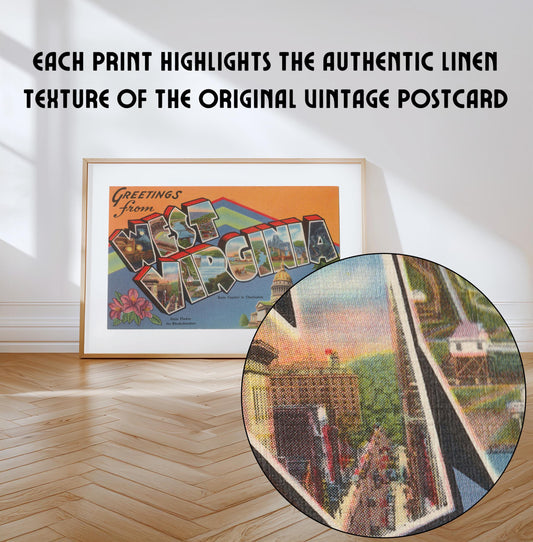 West Virginia Canvas Print, Greetings from West Virginia , Retro West Virginia Decor, Vintage West Virginia, West Virginia Poster