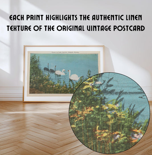 Swans on Lake Wildlife Illustration Vintage Postcard: Canvas Print