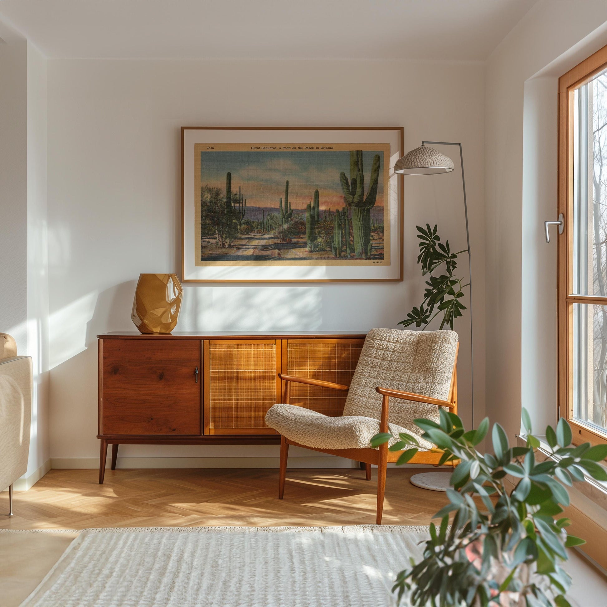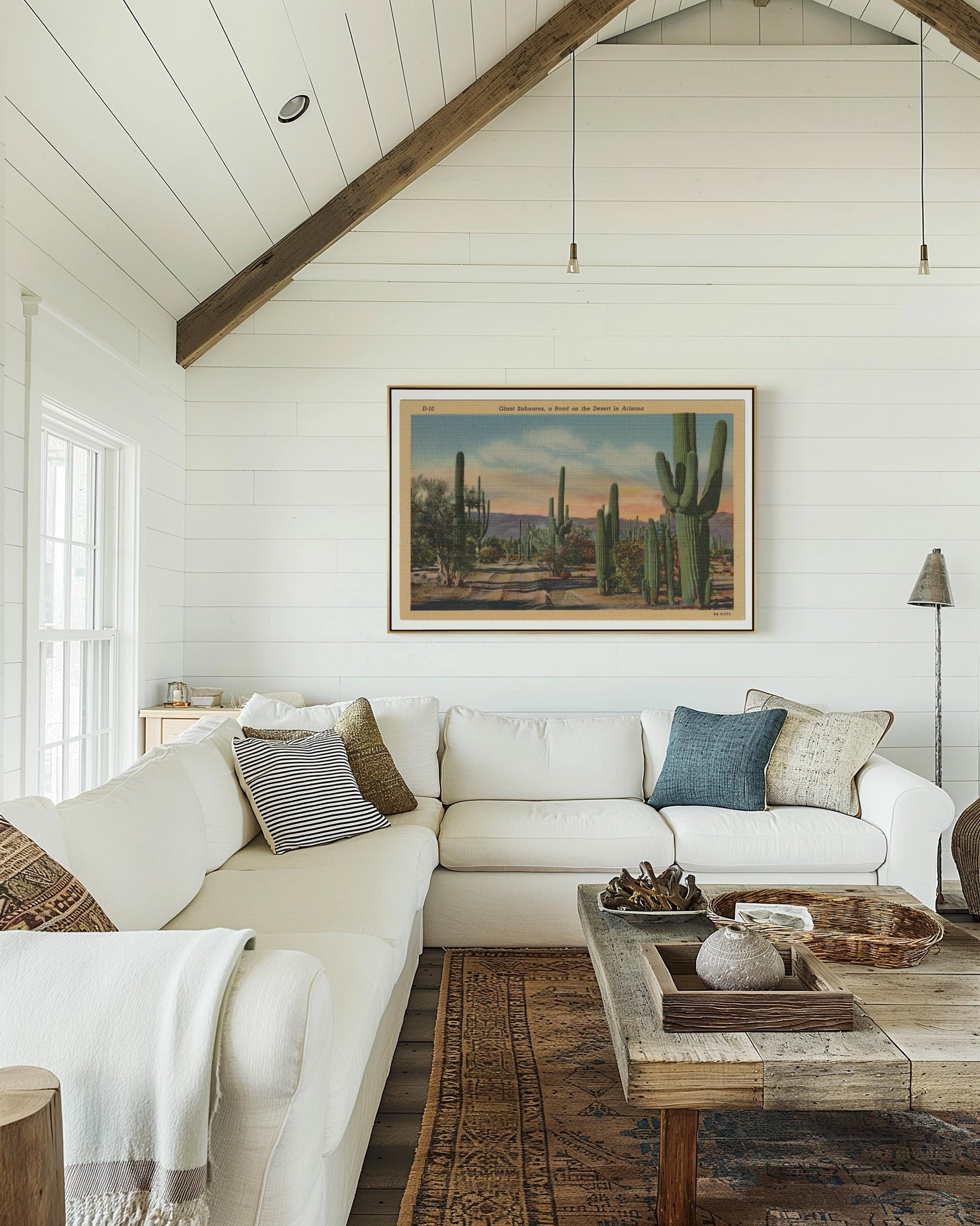 Desert Cactus Landscape Vintage Postcard : Canvas Print