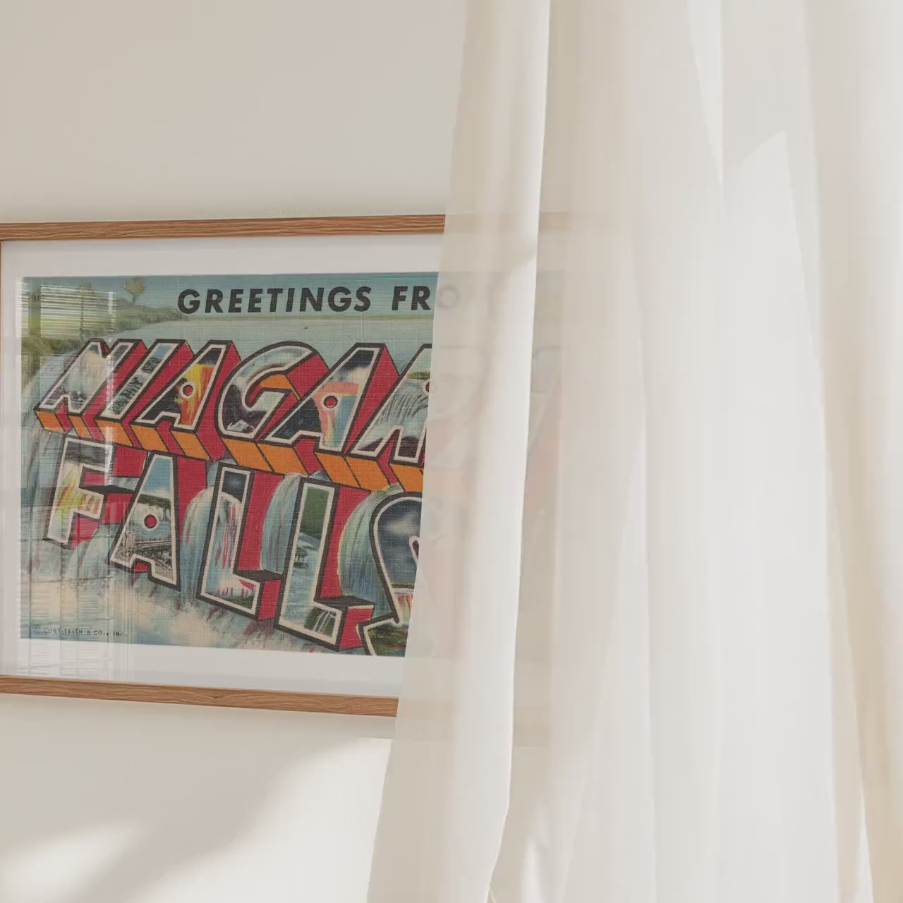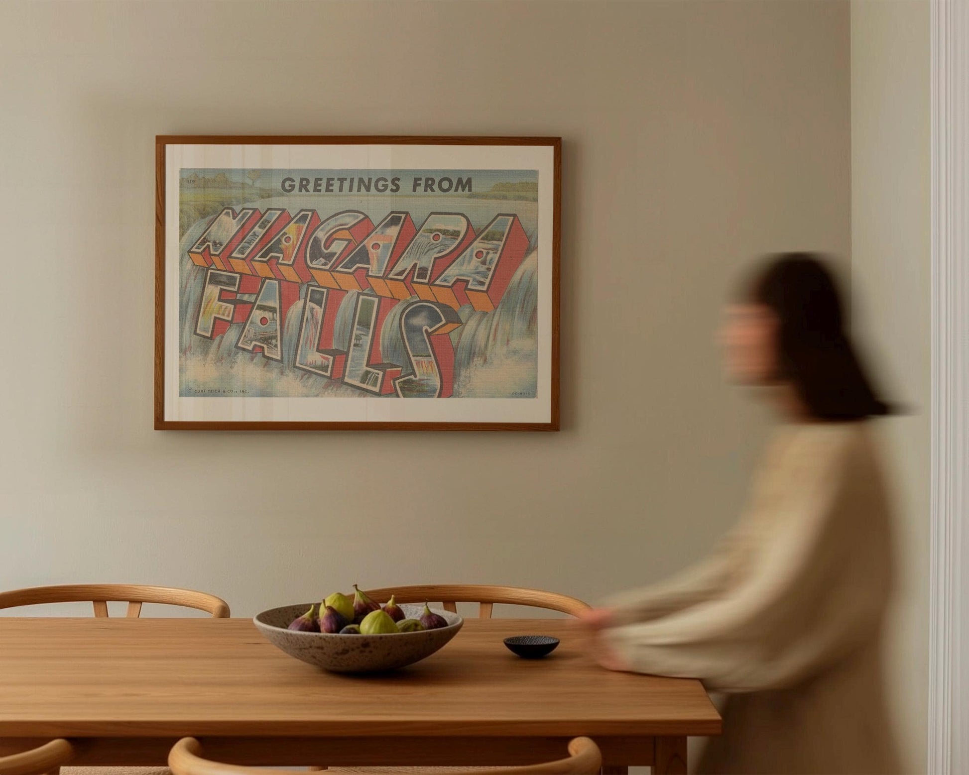 GREETINGS FROM NIAGARA FALLS. Add a touch of vintage charm to your home with this stunning wall art print of an authentic Curt Teich & Co. Large Letter Postcard. The vibrant print gives a nostalgic and timeless feel to your decor, and the high-quality printing ensures that the prints retain their beauty and vibrancy.