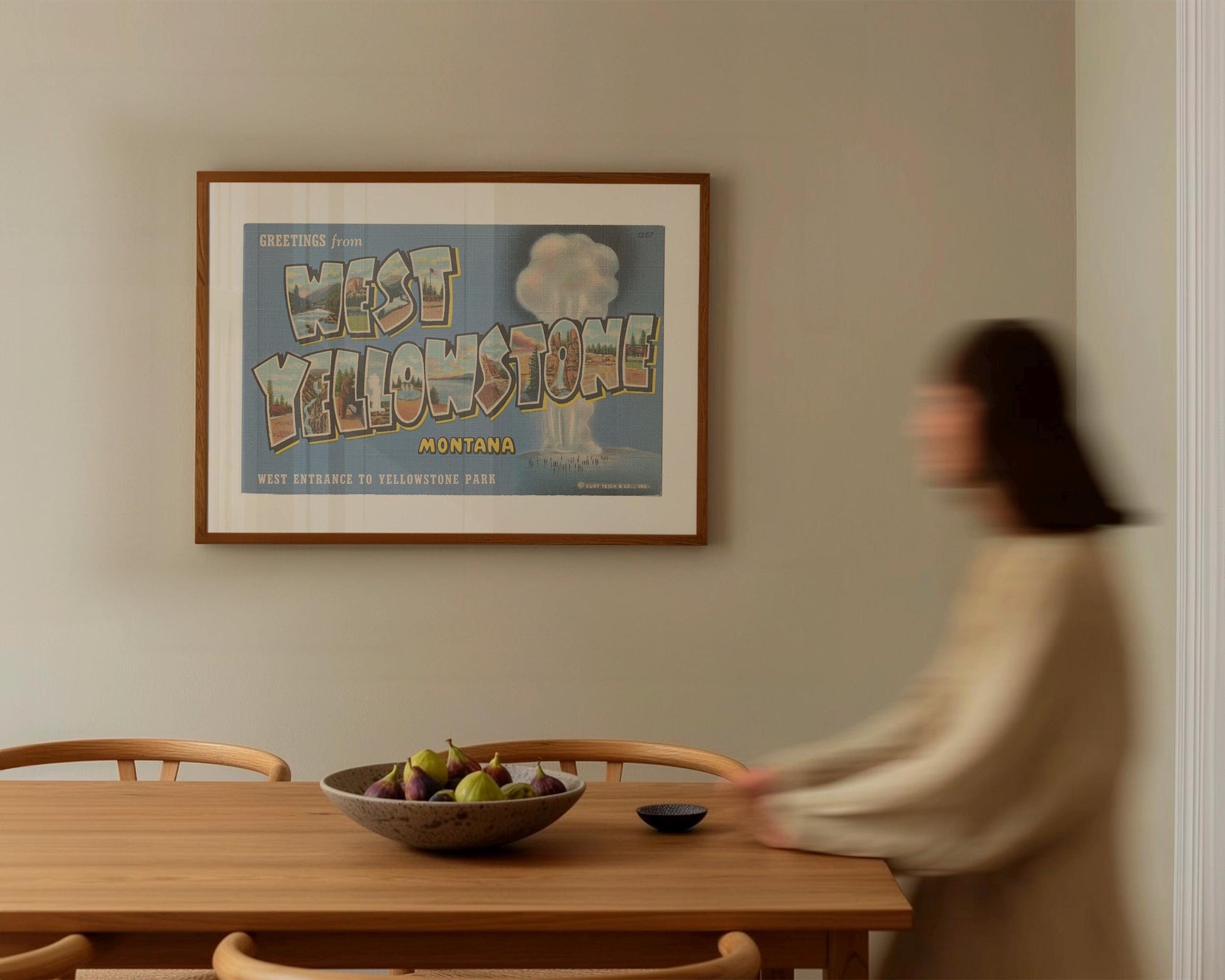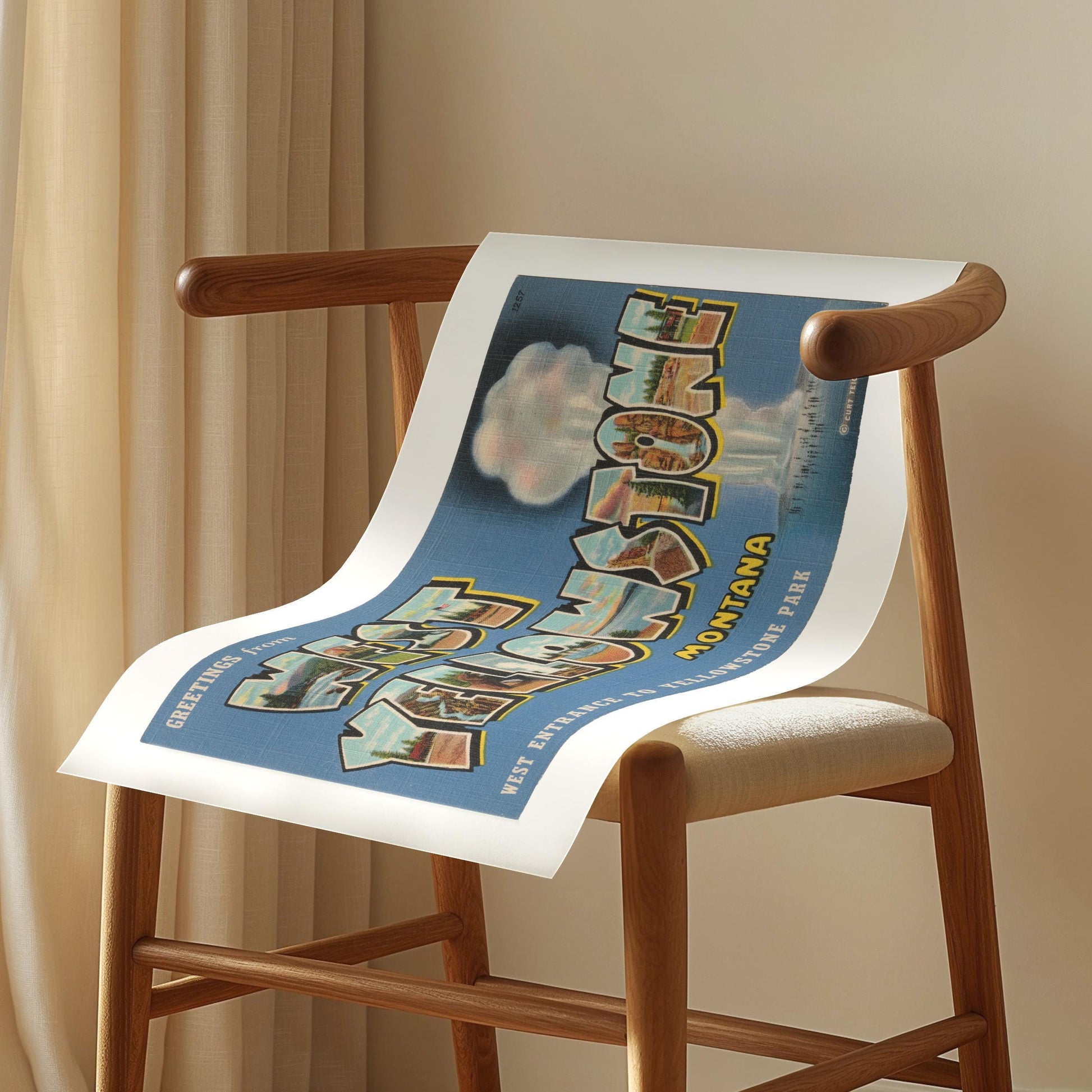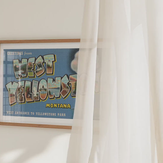 GREETINGS FROM WEST YELLOWSTONE MONTANA. Add a touch of vintage charm to your home with this stunning wall art print of an authentic Curt Teich & Co. Large Letter Postcard. The vibrant print gives a nostalgic and timeless feel to your decor, and the high-quality printing ensures that the prints retain their beauty and vibrancy.
